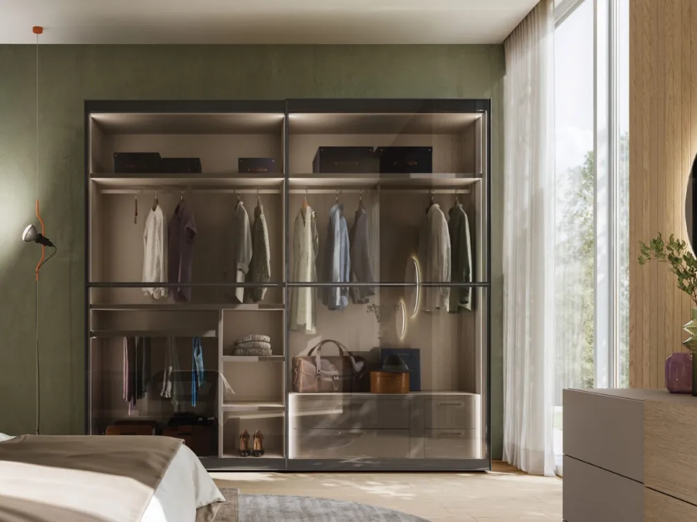 Armadio con anta scorrevole in vetro Dama 41 di Orme: compila il form, contattaci e dai vita alla stanza del relax come l'hai sempre immaginata. Contattaci per informazioni e preventivi e potrai completare la zona notte che hai sempre voluto grazie ad una diversificata offerta di contenitori moderni come questo armadio in vetro nella fotografia. Gli Armadi e le cabine armadio con ante scorrevoli devono ammobiliare la camera garantendoti una perfetta organizzazione degli spazi e un'esclusiva ricerca estetica. Per completare ottimamente il concept d'arredo, opta per le nostre proposte di Arredamento Casa dei migliori produttori, letti, armadi e comodini diversi per eleganza, dimensione e materiale.