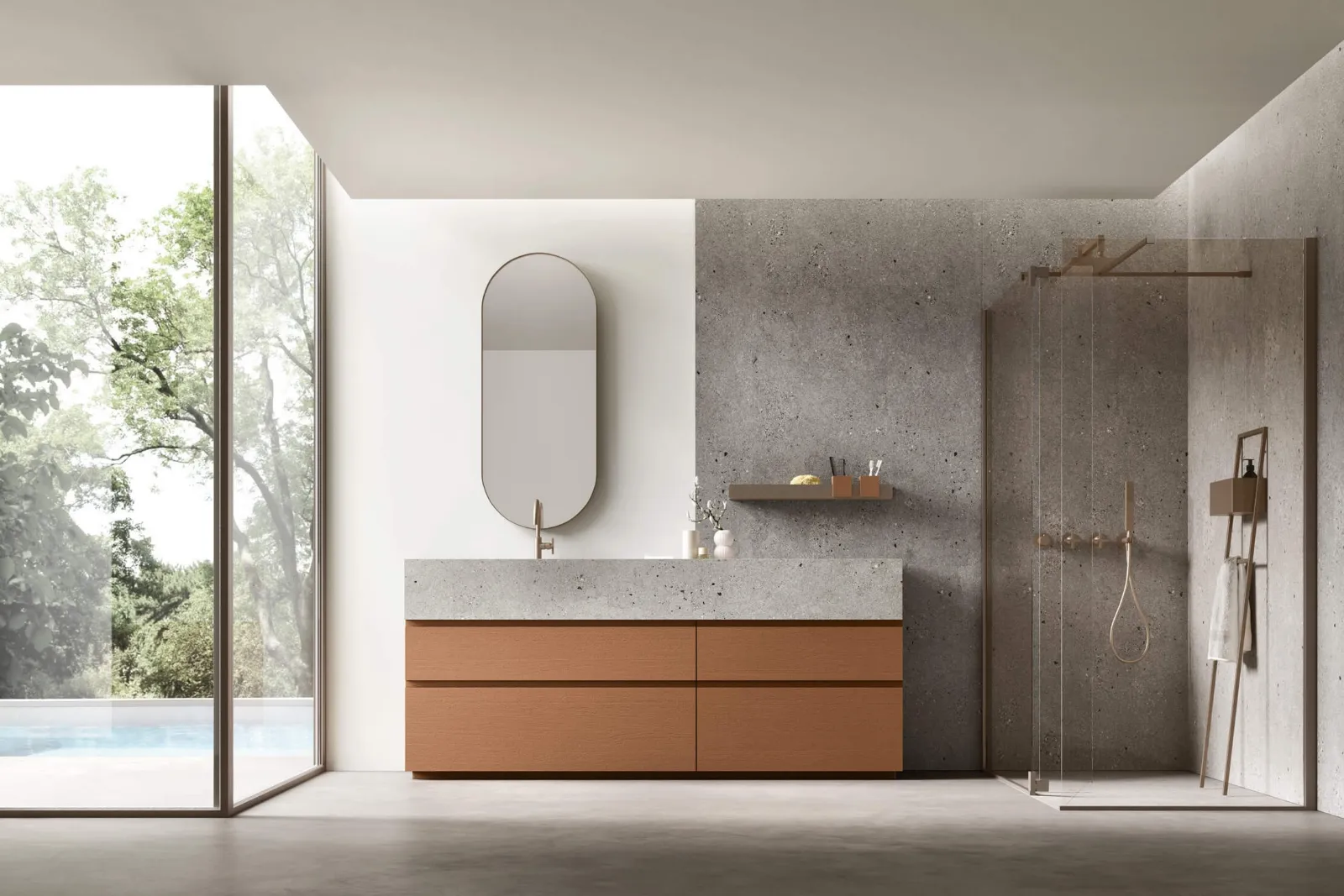 Arreda il bagno di casa moderno perfettamente con Soul 15, mobili bagno da appoggio e accessori in legno di Arcom.