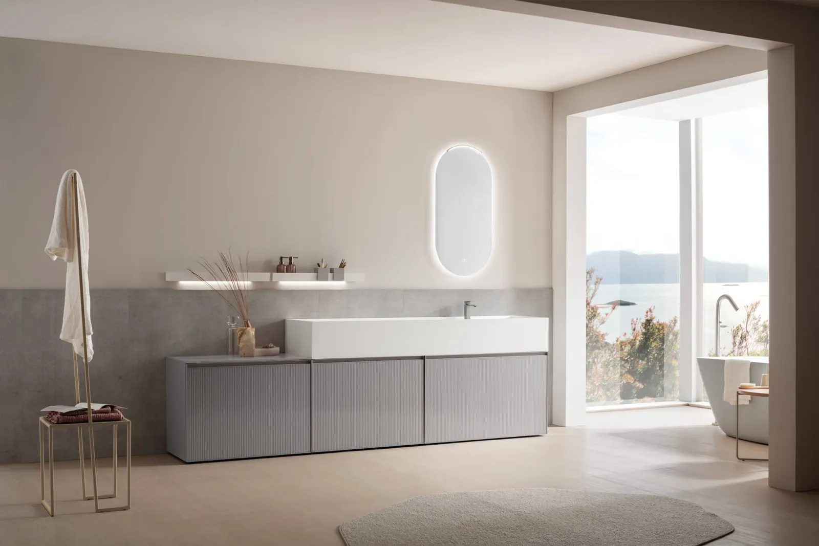Mobile da Bagno in vetro laccato Shape 31 di Arcom: clicca e scopri di più su mobili bagno da appoggio in vetro e elementi accessori del brand.