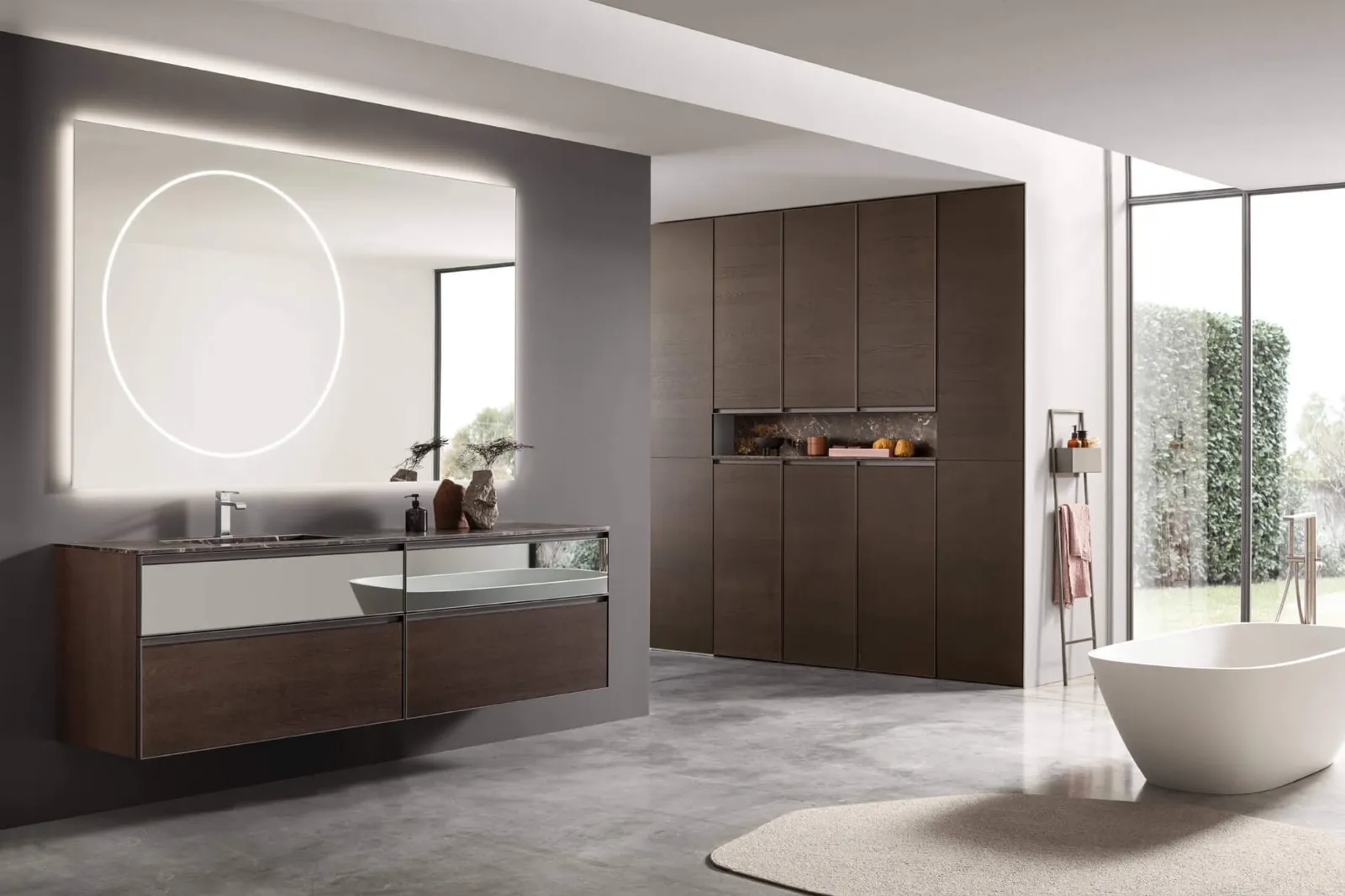 mobili bagno sospesi Shape 33 di Arcom: scopri l'Arredo Bagno in legno moderno e arreda la stanza del benessere.
