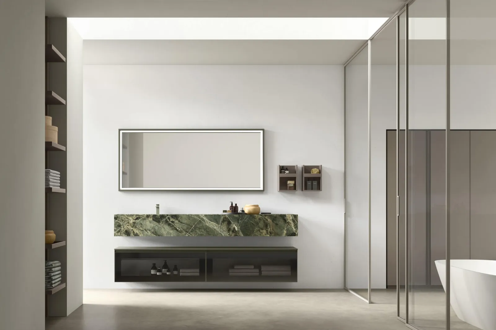 Mobile da Bagno sospeso Shape 34 di Arcom: clicca e scopri di più su mobili bagno sospesi in vetro e accessori della firma.