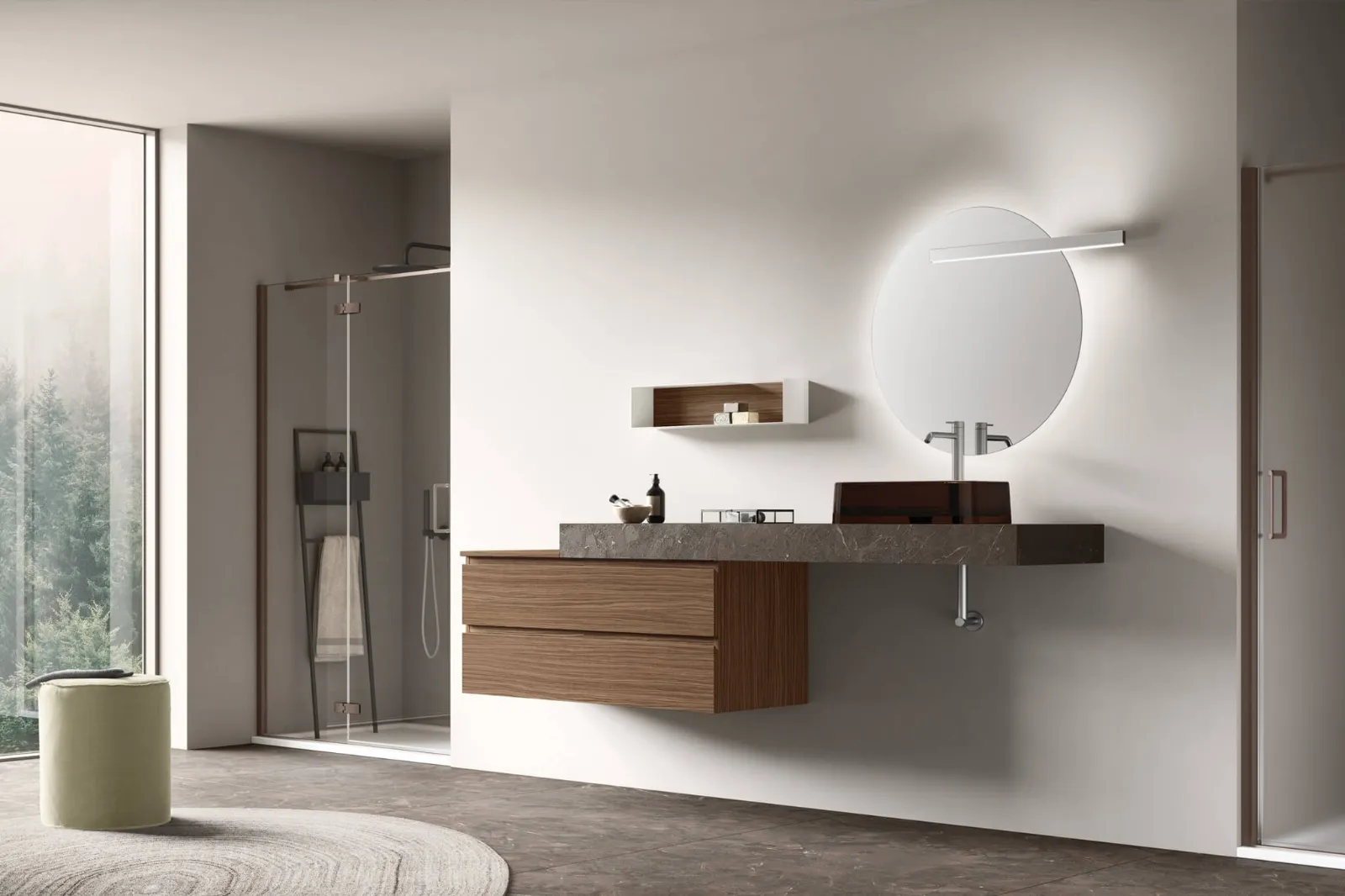 mobili bagno sospesi Slash 06 di Arcom: scopri l'Arredo Bagno in melaminico moderno e arreda la stanza del benessere.