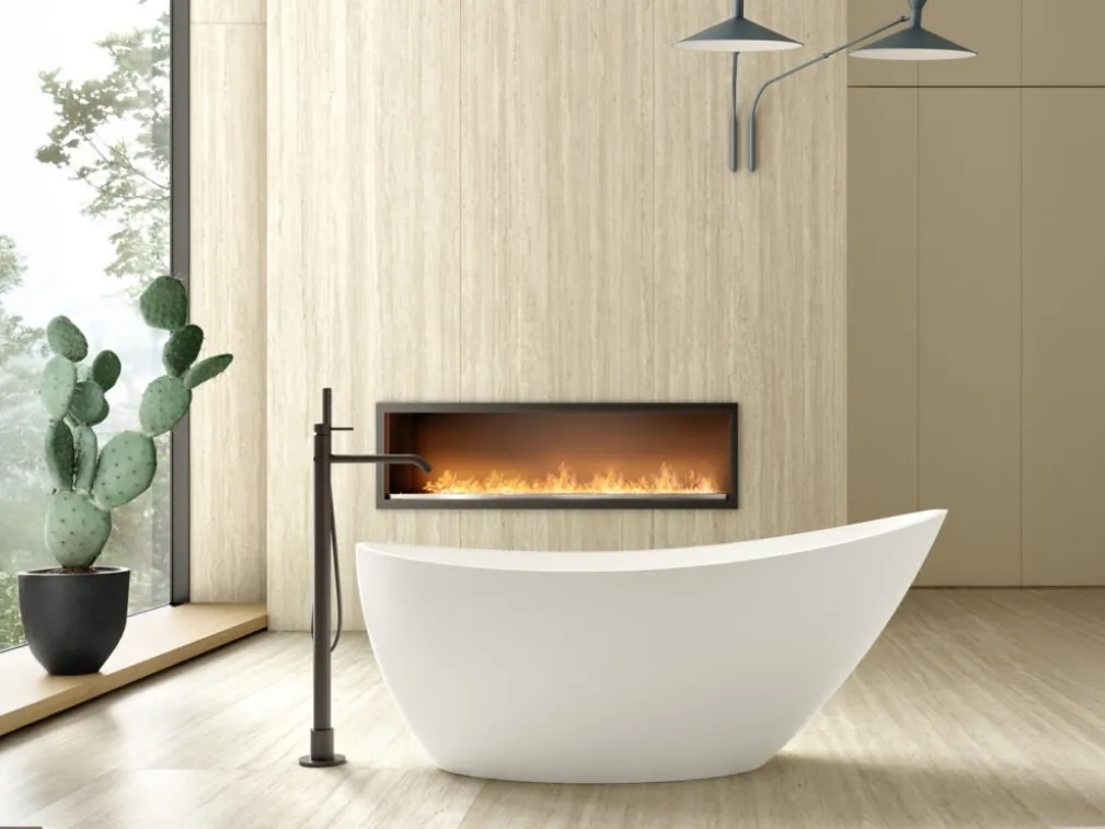 Arreda il tuo bagno design perfettamente con Vasca Chloe, sanitari e oggetti in resina minerale di Arcom.