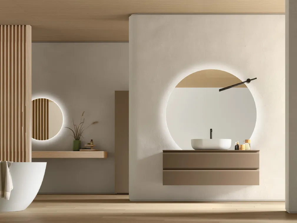 mobili bagno sospesi in laccato opaco della marca Arcom: clicca e scopri l'arredo bagno moderno Virgola 01 per il bagno di casa.