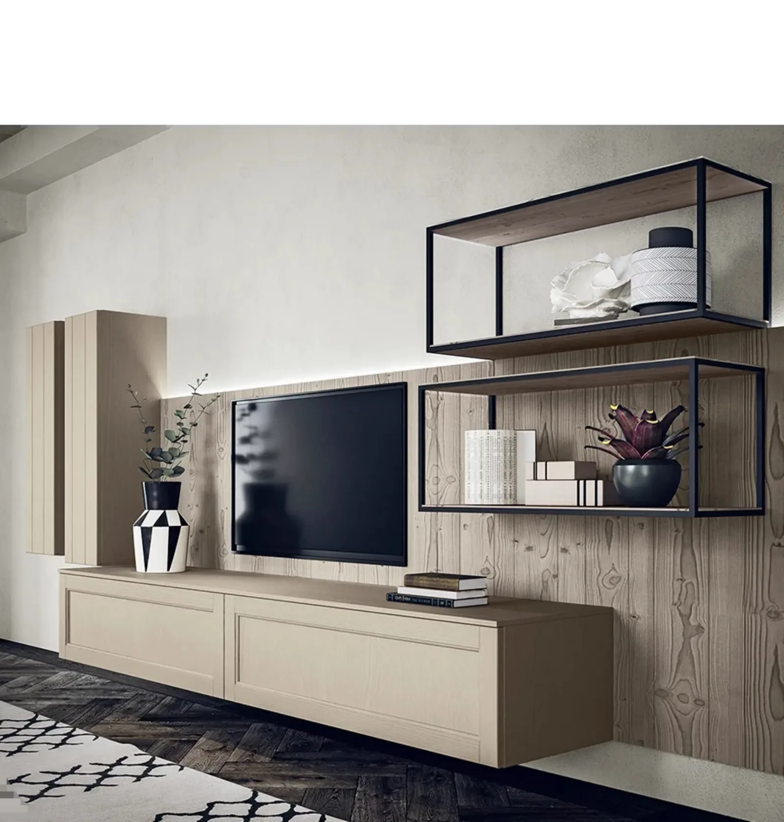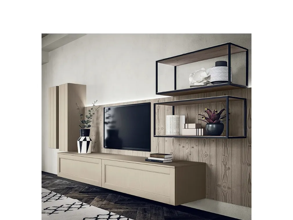 Vuoi progettare un soggiorno operativo e pratico? Ecco a te la parete attrezzata Maestrale 03A Scandola dalle linee decise moderne.