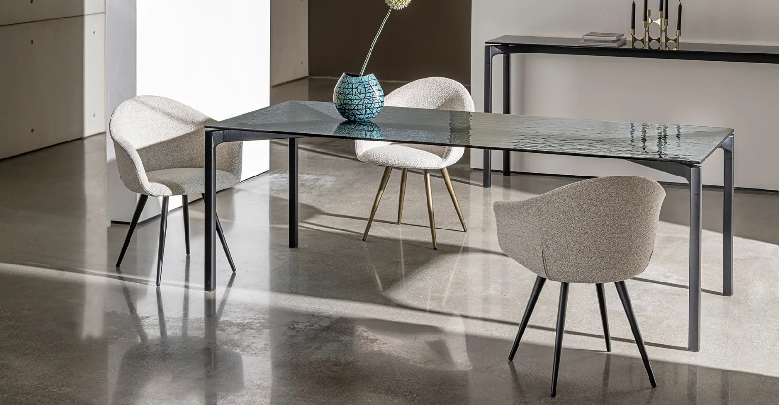 Se vuoi tavoli moderni da pranzo, scopri i modelli fissi di Sovet: clicca e scopri il modello Bone Glass in vetro.