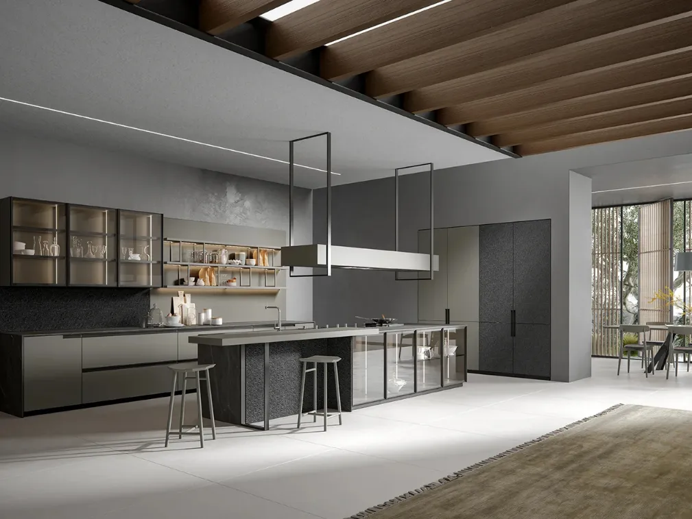 Cucine Moderne con isola: clicca e scopri una ricca gamma di soluzioni della marca Scandola, tra cui il modello E03 Eclettica Polis 03.